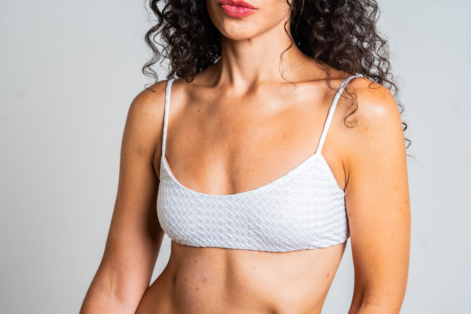Top com alça fina e com fecho de metal dourado. Estampa texturizada Branco Grécia